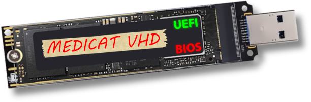 Extract ONLY the VHD folder to the MediCat USB drive, and make sure you have 20GB of free space. a minimum of 64GB USB 3.0 drive is required. WARNING: Extracting the entire .zip file's contents to a MediCat USB drive will cause it to autoboot into MediCat VHD EVERY TIME. So use caution!